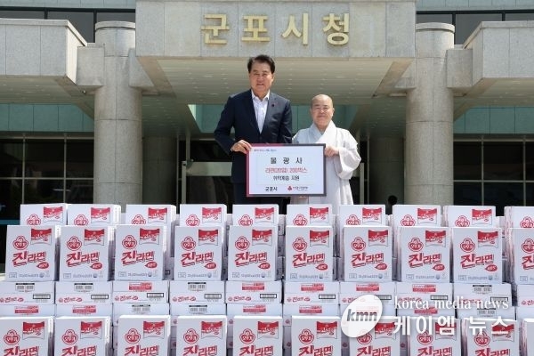 (케이엠뉴스) 군포 불광사가 ‘부처님 오신 날’을 맞아 취약 청소년 가구를 돕기 위해 라면 200박스를 군포시에 기부했다.