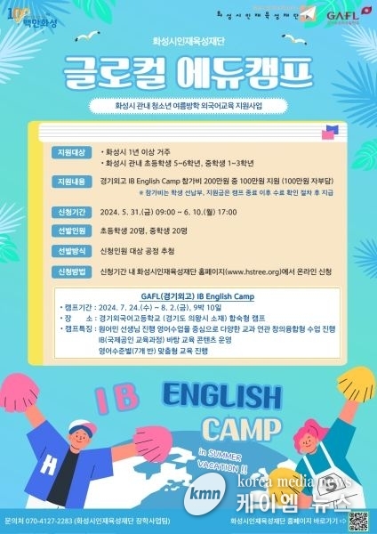 (케이엠뉴스) 화성시인재육성재단 장학사업팀은 5월 31일부터 화성시 관내 초등학생 및 중학생 대상 글로컬 에듀캠프 참가자를 모집한다.
