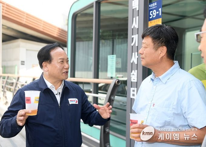 이 시장과 시청 관계자들은 택시 운수종사자들에게 준비한 차(茶)와 함께 택시 야간운행 7부제 이행 지속 협조 필요성을 거듭 강조하며, 택시 현장의 애로사항도 청취했다.
