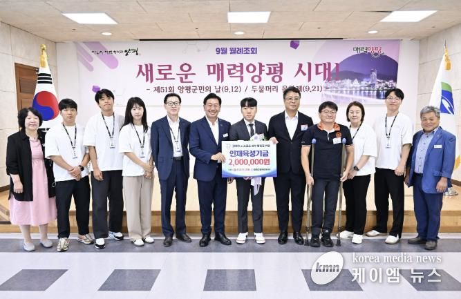 (케이엠뉴스) 양평군은 지난 2일 열린 9월 월례조회에서 ㈜프라임경제 이종엽 대표가 양평군 장애인 체육인재육성을 위해 제7회 장애인 e-스포츠 한일전 대회에서 우승한 이주영 선수(철권8-종목)에게 지정기탁금 2백만 원을 전달했다고 밝혔다.