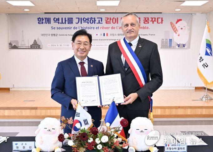 (케이엠뉴스) 양평군이 30일 프랑스 쉬이프시와 ‘함께 역사를 기억하고 같이 미래를 꿈꾸다’라는 슬로건 아래 공동발전과 번영을 위한 다방면의 교류사업을 이어가기로 약속했다.