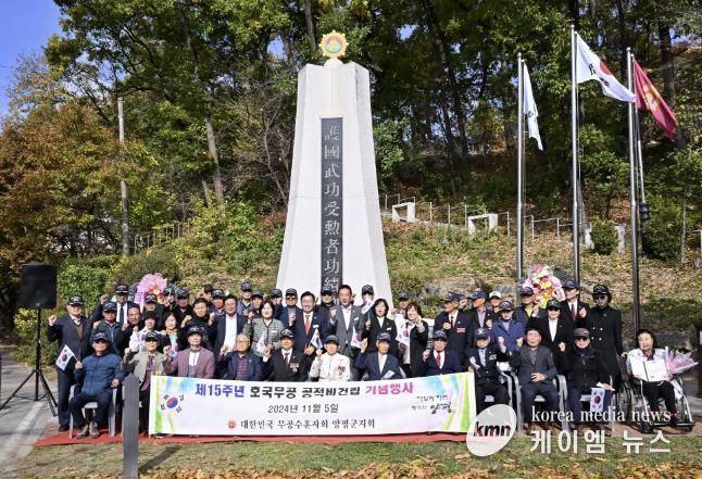 (케이엠뉴스) 대한민국 무공수훈자회 양평군지회는 지난 5일 양평읍 갈산공원 내 호국무공수훈자 공적비 기념탑에서 공적비건립 15주년 기념행사를 개최했다.