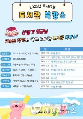(케이엠뉴스) 태백교육도서관은 오는 7월 26일 여름방학을 맞아 초등학교 1~3학년 25명을 대상으로 2025년 독서캠프 ‘도서관 북캉스’를 운영한다.