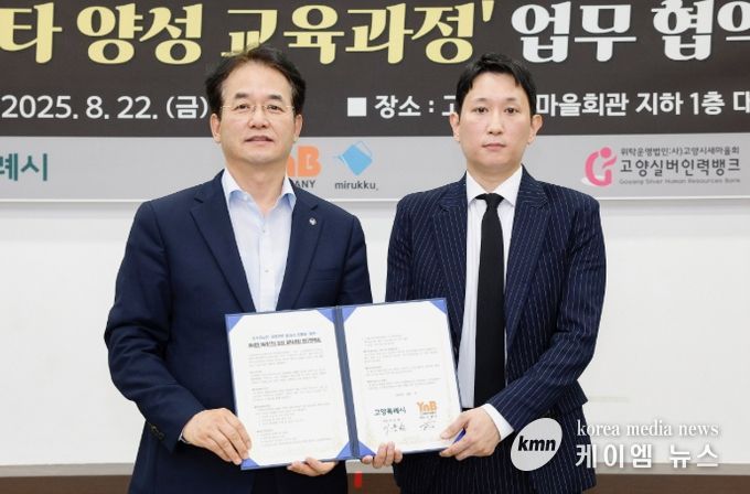 (케이엠뉴스) 고양특례시는 지난 22일 고양시새마을회관에서 ㈜와이앤비컴퍼니(미루꾸커피)와‘실버바리스타 양성교육’협약식을 체결했다고 밝혔다.