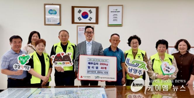 (케이엠뉴스) 남양주시는 26일 철마기업인회와 봉사 단체 ‘함께하는 사람들’이 다산1동 취약 어르신을 위해 배추김치와 멀티탭 등의 후원품을 다산1동 지역사회보장협의체(위원장 정순옥)에 기탁했다고 밝혔다.