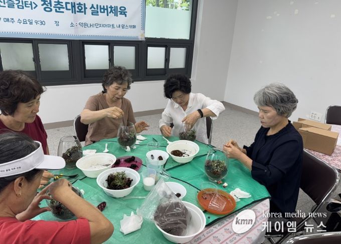 이번 프로그램은 어르신즐김터 참여자들이 정서적 안정과 생활 속 즐거움을 느낄 수 있도록 마련된 원예활동으로 ‘이끼 테라리움 만들기’라는 주제로 진행됐다.