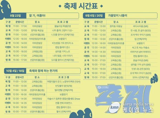 (케이엠뉴스) (재)경기문화재단 지역문화본부 경기창작캠퍼스는 오는 9월 6일과 20일에 가을 ‘축제’를 개최한다고 밝혔다.