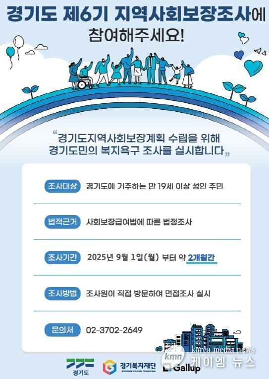 이번 사회보장조사는 ‘사회보장급여법’ 제35조에 근거한 법정조사로, 경기도의 ‘제6기(2027년~2030년) 지역사회보장계획’을 마련하기 위한 기초자료로 활용된다.