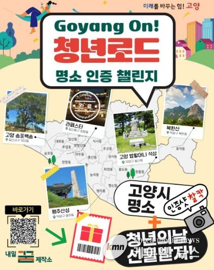 (케이엠뉴스) 고양특례시는 오는 9월 20일 개최되는‘2025 고양 청년의 날’기념행사를 앞두고, 청년들이 직접 참여하고 즐길 수 있는 사전 이벤트 ‘GOYANG ON! 청년로드 – 명소 인증 챌린지’를 운영한다고 밝혔다.