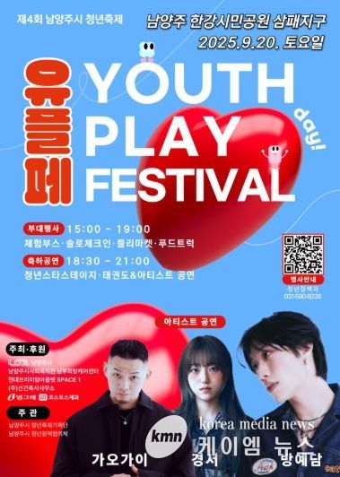 (케이엠뉴스) 남양주시는 오는 20일 한강시민공원 삼패지구에서 청년의 날을 기념해 ‘유플페(Youth Play Festival)’ 청년축제를 개최한다.