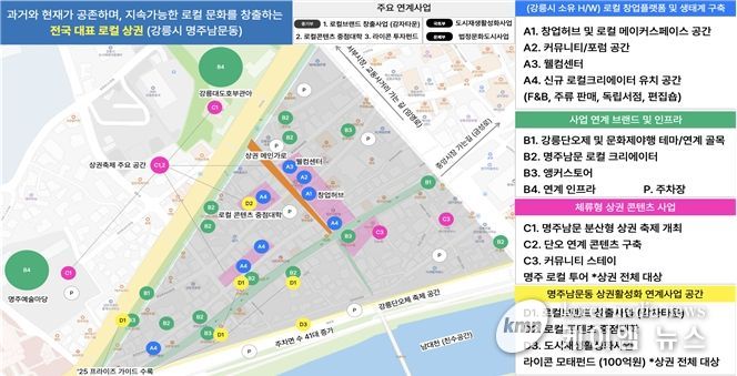 강릉은 사업비 70억 원(국 35억, 도 10.5억, 시 24.5억)을 투입해, 오랜 기간 행정 중심지였던 명주동·남문동 일원의 대도호부 관아와 적산가옥 등 역사적 자원을 활용, 문화 스토리를 담은 매력적인 상권을 복원할 계획이다.