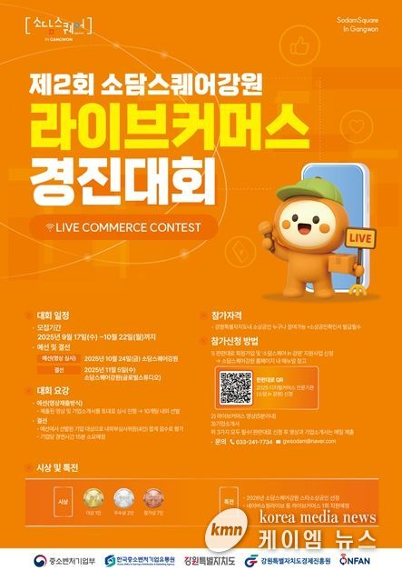 (케이엠뉴스) 강원특별자치도는 도내 소상공인의 온라인 마케팅 역량 강화를 위해 소상공인이 직접 참여하는 '제2회 라이브커머스 경진대회'를 개최한다고 밝혔다.