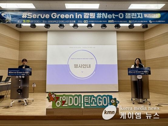 (케이엠뉴스) 강원특별자치도·삼척·원주·춘천 탄소중립 지원센터(센터장 김진영·김주영·전용한·임성린)는 19일, 강원대 정강홀에서 도내 공무원 100여 명을 대상으로 탄소중립 퀴즈대회 '#Serve Green in 강원 #Net-0 챌린지」를 개최했다고 밝혔다.