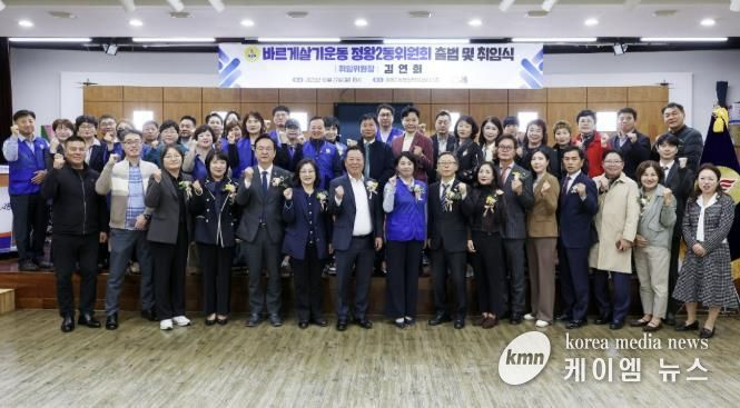 (케이엠뉴스) 시흥시 정왕2동에서 새로운 바른 공동체가 힘차게 출발했다. 바르게살기운동 정왕2동 위원회는 위원장으로 김연희 씨를 선출하며, 지난 10월 27일 정왕2동 행정복지센터 2층 대강당에서 출범식과 위원장 취임식을 개최했다. 이 자리에서 지역사회 발전과 주민 화합을 목표로 본격적인 활동이 시작됐다.