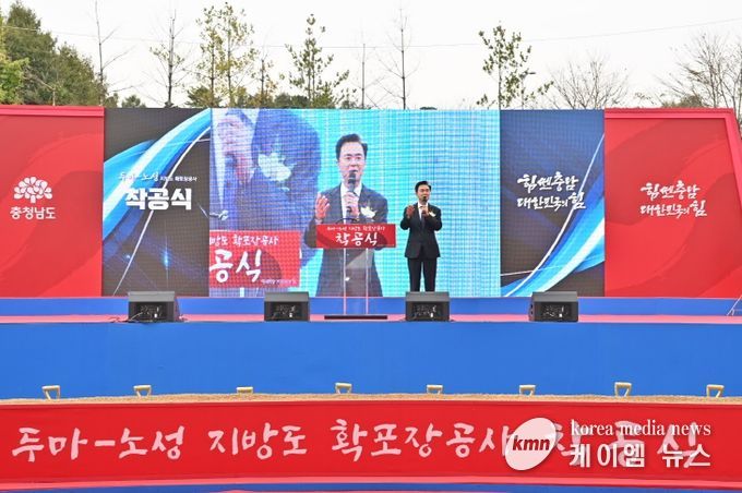도는 30일 계룡시 종합운동장에서 김태흠 지사를 비롯해 이응우 계룡시장, 백성현 논산시장, 윤길호 계룡건설산업(주) 사장, 성우종 ㈜도원이앤씨 회장, 주민 등 300여 명이 참석한 가운데, 계룡시 엄사면에서 논산 상월을 잇는 ‘두마-노성 지방도 확포장공사’ 착공식을 개최했다.