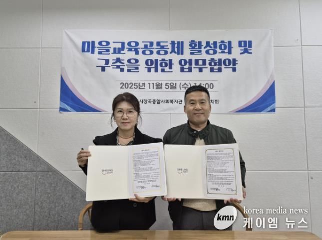 (케이엠뉴스) 시흥시장곡종합사회복지관은 지난 11월 5일 장곡교육자치회와 마을교육공동체 활성화 및 구축을 위한 업무협약을 체결했다.