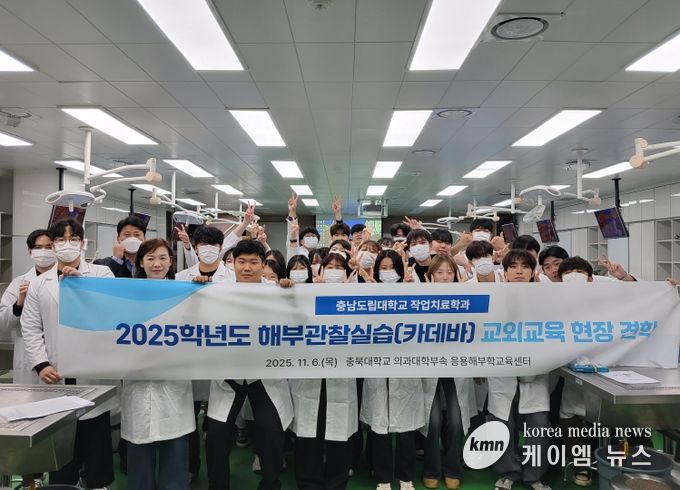 (케이엠뉴스) 충남도립대학교 작업치료학과는 재학생과 지도교수진 등 43명이 참여한 가운데 충북대학교 의과대학부속 응용해부학교육센터에서 카데바(Cadaver) 실습을 진행했다고 10일 밝혔다.