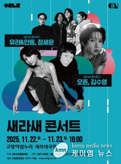 (케이엠뉴스) (재)고양문화재단은 소극장 기획공연 시리즈 ‘2025 새라새 ON 시리즈’의 11월 프로그램으로, 감각적인 싱어송라이터들을 만날 수 있는 '새라새 콘서트 1~2'를 11월 22일과 23일 양일간 고양아람누리 새라새극장에서 개최한다.