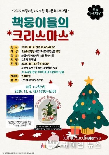 (케이엠뉴스) 고양특례시 화정어린이도서관은 오는 12월 6일부터 12월 13일까지 매주 토요일 오전 10시에 그림책 창의미술 프로그램‘2025 책둥이들의 크리스마스’를 운영한다.