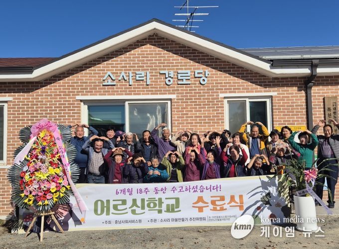 (케이엠뉴스) 충남사회서비스원은 11월 10일 소사리마을회관에서 농‧어촌 돌봄시스템 구축사업의 일환으로 진행된 천안 목천읍 소사리 어르신학교 수료식을 진행했다.