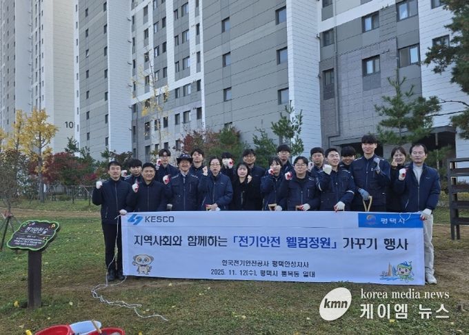 (케이엠뉴스) 평택시와 한국전기안전공사(평택안성지사)는 12일 평택시 고평지구 통복천 일원 ‘전기안전 숲’에서 임직원 20여 명이 참여한 가운데 나무 비료주기 행사를 진행했다.
