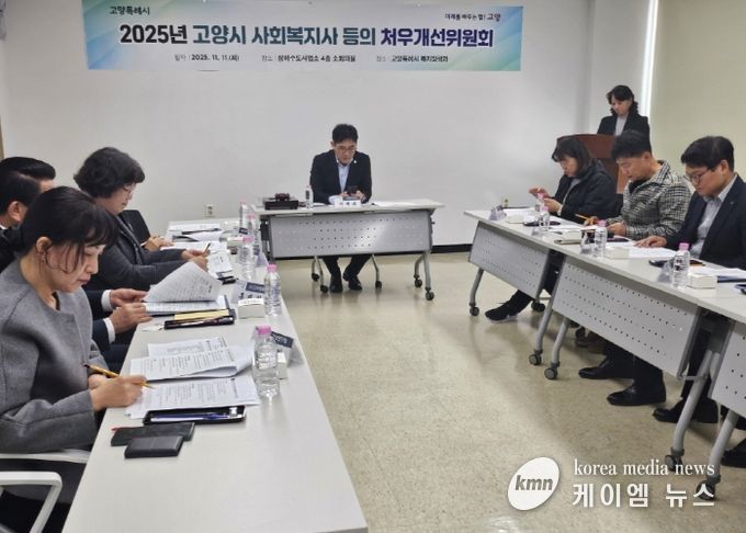 (케이엠뉴스) 고양특례시는 지난 11일 상하수도사업소 소회의실에서‘사회복지사 등 처우개선위원회’첫 회의를 개최하며 사회복지종사자의 근로여건과 처우개선을 위한 첫 발을 내딛었다.