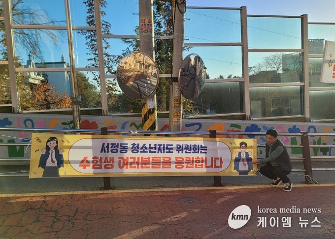 (케이엠뉴스) 평택시 서정동 청소년지도위원회는 2026학년도 대학수학능력시험을 앞둔 수험생들을 응원하기 위해 ‘서정동 청소년 지도위원회는 수험생 여러분들을 응원합니다.’라는 격려 문구가 담긴 현수막을 게시했다.