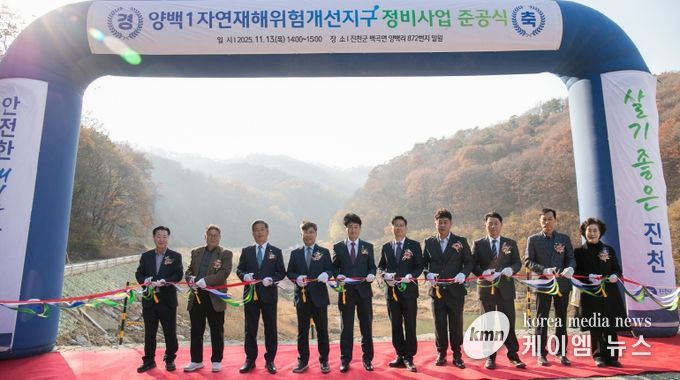 (케이엠뉴스) 충북 진천군은 13일 백곡면 양백리 일원에서 ‘양백1 자연재해위험개선지구 정비사업 준공식’을 개최했다.