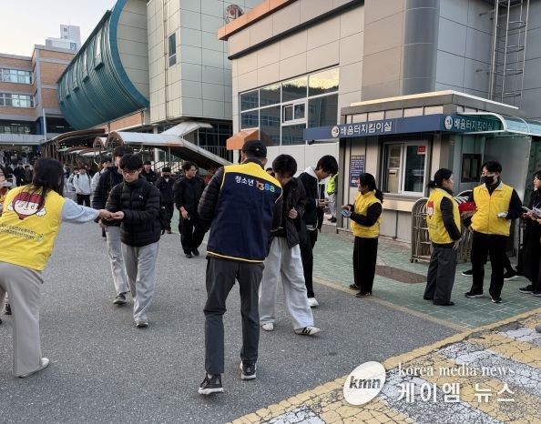 (케이엠뉴스) 충남사회서비스원(원장 김영옥) 청소년상담복지센터는 11월 13일 대학수학능력시험을 맞아 온양고등학교를 비롯한 4개 수험장 인근에서 ‘2025년 청소년전화1388 수능캠페인’을 실시했다. 이번 캠페인은 수능을 마친 청소년들의 심리·정서적 안정 지원과 위기(가능) 청소년 조기 발굴을 목적으로 추진됐다.