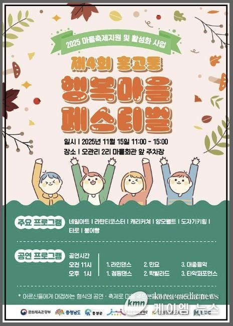 (케이엠뉴스) 홍성군은 15일 오관2리 마을회관 주차장 일원(홍성읍 조양로143번길 35-12)에서 ‘제4회 홍고통 행복마을 페스티벌’을 개최한다고 밝혔다.