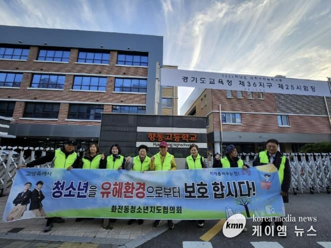 (케이엠뉴스) 고양특례시 덕양구 화전동 청소년지도협의회는 지난 13일, 2026학년도 대학수학능력시험이 실시된 향동고등학교 앞에서 수험생 응원과 함께 청소년 유해환경 정화 캠페인을 전개했다.
