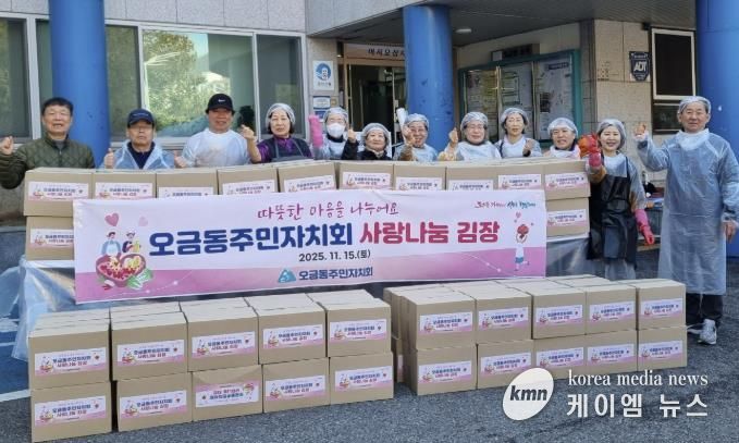 (케이엠뉴스) 군포시 오금동주민자치회는 지난 11월 15일 오금동행정복지센터 앞마당에서 지역의 어려운 이웃을 위한 ‘오금마을 김장나눔사업’을 진행했다.