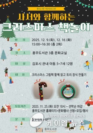 (케이엠뉴스) 김포시 풍무도서관은 ‘사서와 함께하는 크리스마스 책놀이’프로그램을 12월 9일과 16일 오후 3시부터 4시 30분까지 운영한다.
