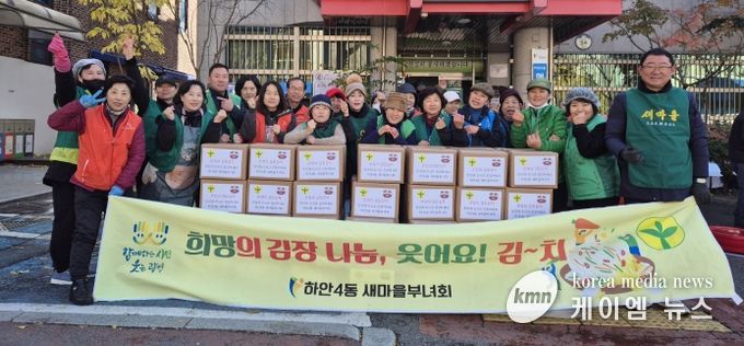 (케이엠뉴스) 광명시 하안4동 새마을부녀회는 지난 17일부터 18일까지 이틀간 하안4동 행정복지센터 주차장에서 ‘온정의 김장김치 담그기’ 행사를 진행했다.
