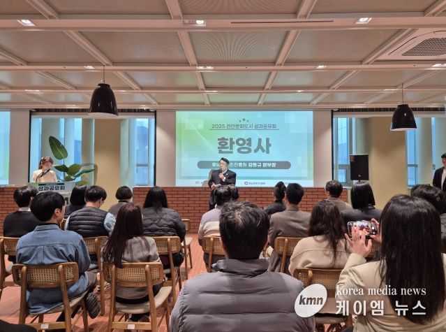 (케이엠뉴스) 충남콘텐츠진흥원은 11월 20일 충남 천안 그린스타트업타운에서 ‘2025년 천안문화도시 성과공유회’를 개최했다. 이번 행사에는 천안문화도시 정책위원회를 비롯해 각 지원사업 참여자들이 함께해 자리를 더욱 빛냈다.