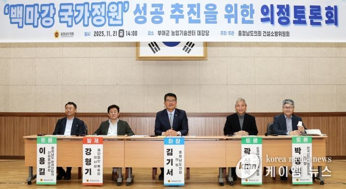 (케이엠뉴스) 충남도의회는 21일 부여군 농업기술센터 대강당에서 ‘백마강 국가정원 지정을 위한 성공적 추진 방안’을 주제로 의정토론회를 열고, 부여의 역사‧문화‧생태 자원을 활용한 국가정원 추진 방향을 본격 모색했다.