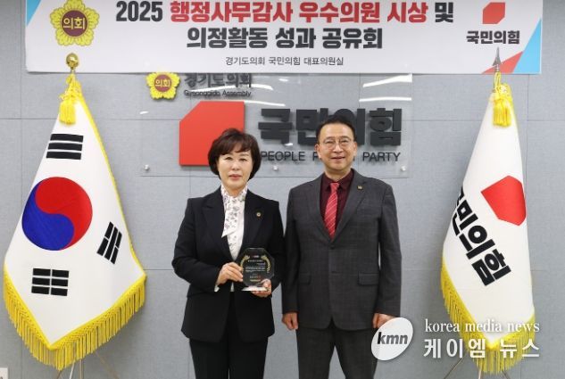 (케이엠뉴스) 경기도의회 국민의힘 정책수석이자 경제노동위원회 소속 이채영 의원(국민의힘, 비례)은 24일 국민의힘 회의실에서 열린 ‘2025년 행정사무감사 우수의원 시상식’에서, 감사 기간 동안 도민 중심의 정책대안 제시와 구조적 문제 진단에 기여한 공로를 인정받아 행정사무감사 우수의원으로 선정됐다.