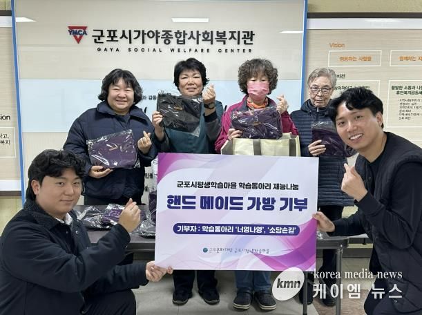 (케이엠뉴스) 군포문화재단 군포시평생학습마을은 평생학습동아리의 사회참여를 확대하기 위한 학습 나눔 프로그램 ‘배움 愛 나눔’의 일환으로, 핸드메이드 가방 76점을 제작하여 지난 11월 24일 군포시가야종합사회복지관에 기부했다고 밝혔다.