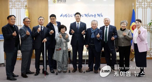 김 의장은 이날 의장 집무실에서 경기도장애인복지단체연합회 이영재 회장, 경기도지체장애인협회 김원종 회장, 경기도시각장애인연합회 정태곤 회장 등을 만나 내년도 장애인복지 예산의 삭감으로 인한 어려움을 청취했다.
