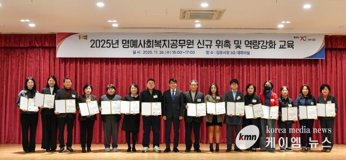 (케이엠뉴스) 김포시는 지난 26일 통·리장과 지역사회보장협의체 위원 등 지역 주민 181명을 신규 명예사회복지공무원으로 위촉했다. 이 중 대표 15명에게 위촉장을 수여했으며, 약 100명을 대상으로 역량 강화 교육도 함께 진행했다.
