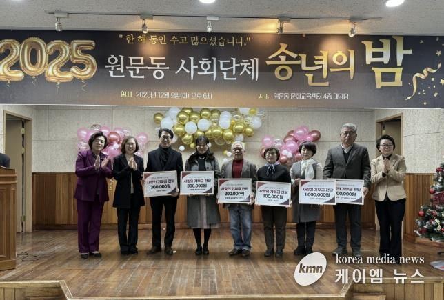 (케이엠뉴스) 과천시 원문동은 지난 9일 ‘2025 원문동 사회단체 합동 송년의 밤’을 개최하고, 한 해를 돌아보며 지역 발전을 위해 힘쓴 주민들의 노고를 격려하는 시간을 가졌다. 또한 지역사회 나눔 문화 확산을 위한 기부금 전달식도 함께 진행되어 그 의미를 더했다.