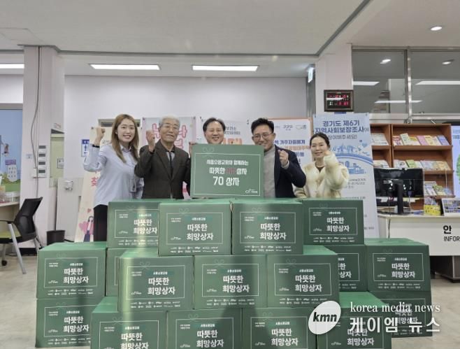 (케이엠뉴스) 시흥시 군자동에 있는 시흥소망교회가 국제구호 NGO ‘희망친구 기아대책’와 함께 지난 12월 15일 군자동 행정복지센터에 따뜻한 희망상자 70상자(700만 원 상당)를 기부했다.