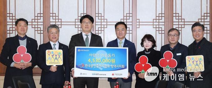 (케이엠뉴스) 한국공인중개사협회 평택시지회는 지난 17일, 평택행복나눔본부를 방문해 관내 소외계층을 위한 ‘사랑의 이웃돕기’성금 453만 원을 전달했다.
