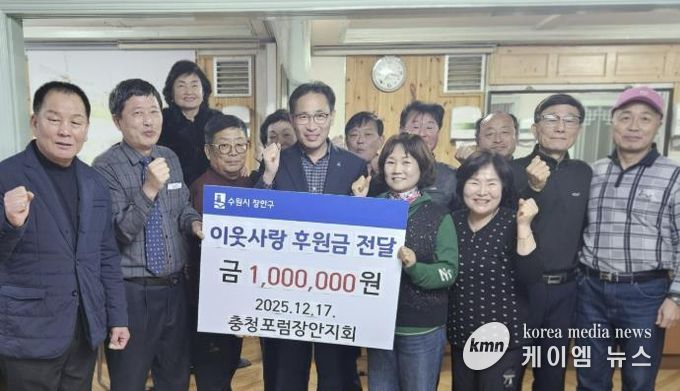 이일희 장안구청장은 “충청포럼 장안지회의 지속적인 관심과 후원에 감사드린다”며 “기부금은 지역사회 복지와 주민 지원을 위해 소중히 사용될 것”이라고 전했다.