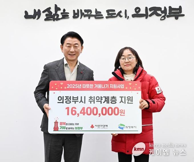 (케이엠뉴스) 의정부시는 12월 18일 경기사회복지공동모금회 북부사업본부(경기북부 사랑의열매)가 관내 저소득층의 따뜻한 겨울나기를 위해 성금 1천640만 원을 기부했다고 밝혔다.
