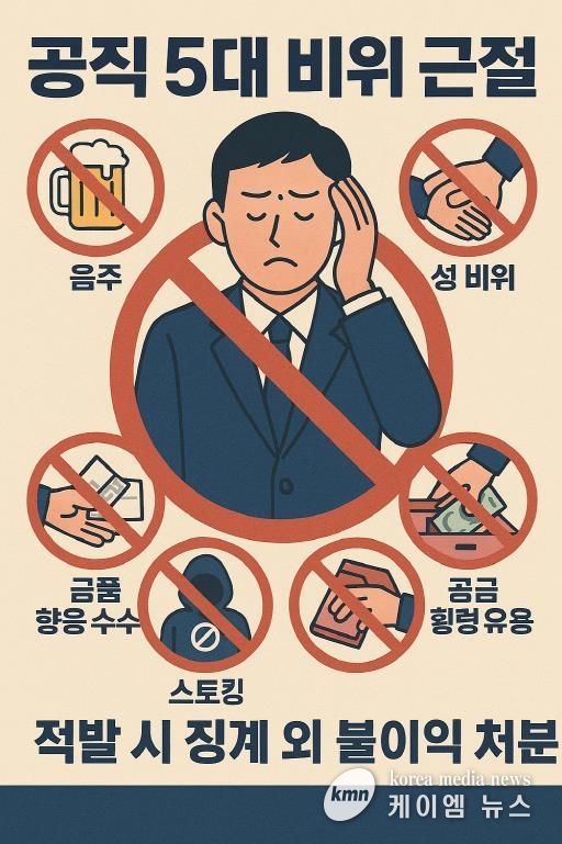 향후 5대 비위가 발생할 경우 비위 정도와 관계없이 중징계 의결을 요구하고, 징계 처분과는 별도로 인사·재정·복지후생 등 전반에 걸친 추가 불이익 조치를 병행해 비위 행위를 강력히 근절해 나갈 방침이다.