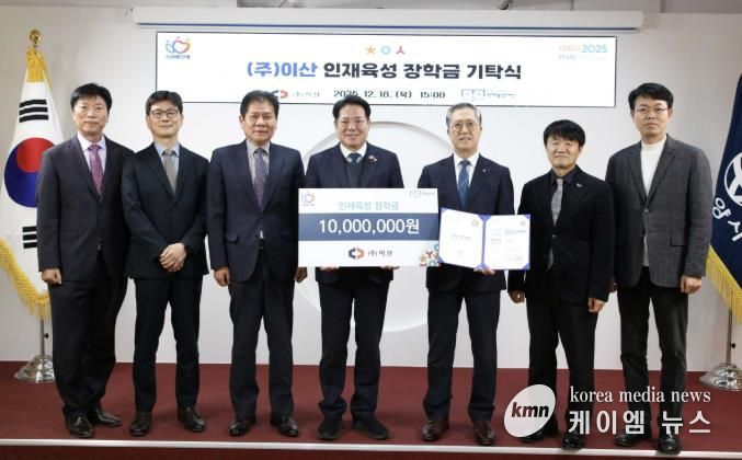 한광두 ㈜이산 사장은 “지역사회로부터 받은 사랑과 성원에 보답하고, 미래세대의 건강한 성장과 꿈을 응원하고자 장학금을 기탁하게 됐다”며, “이 장학금이 학생들에게 든든한 디딤돌이 되길 바란다”고 밝혔다.