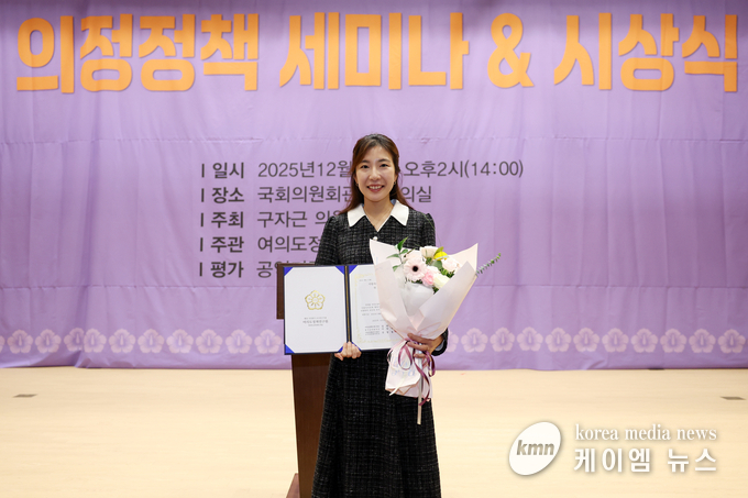오산시의회 전예슬 의원이 19일 국회 의원회관에서 ‘2025 대한민국 지방자치평가 의정정책대상’을 수상했다.