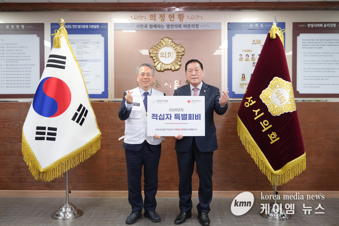 안성시의회(의장 안정열)는 19일 대한적십자 경기도지사에 2026년 적십자 특별회비를 전달하며 긴급구호 및 따뜻한 이웃나눔 활동에 동참을 하였다.