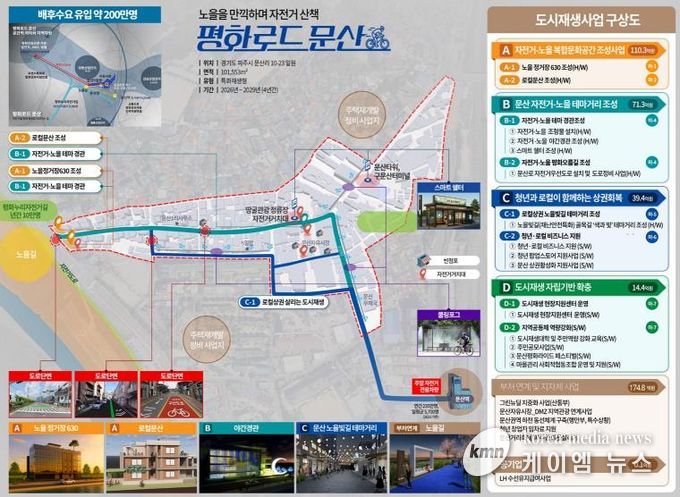 시는 문산천의 노을 경관과 수변을 따라 문산역과 디엠지(DMZ) 평화누리길로 이어지는 자전거길, 쉼터를 결합한 복합문화공간과 평화를 주제로 한 특화 거리를 조성하는 한편, 주민과 상인, 청년들의 협력을 기반으로 침체된 상권을 되살려 지속 가능한 도시재생 자립 기반을 다져나간다는 구상이다.
